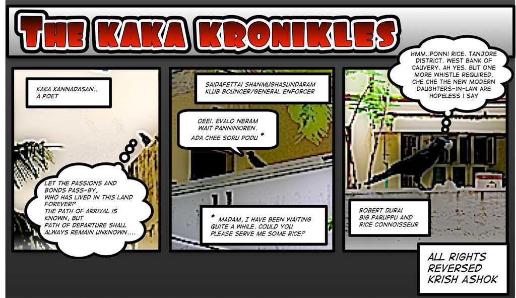 I will try to provide English translations where necessary, but at times, English tends to kill the local language flavour.
