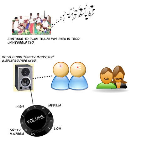 Why interrupt a musician’s flow when the Bose G1000 “Getty Monster” amplifier/speaker can be used to generate 100 dB attention gathering getty melam sounds.