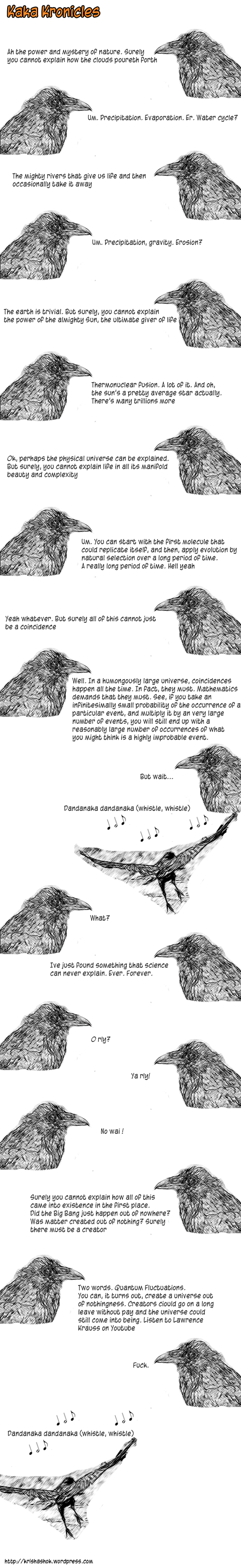 On the other hand, this argument proves nothing either. 🙂 The “surely there must be a creator” argument is always unconvincing… (interestingly, the phrase “god of the gaps” was coined by an evangelist).