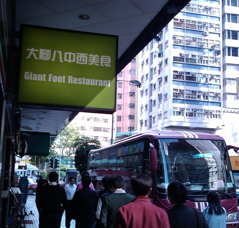 It’s simple really. Some creative entrepreneur might have seen the idiomatic expression “foot in the mouth” and imagined that these decadent westerners like to eat the leggy parts of livestock, so literally “foot in the mouth”, and what better foot than a really large foot in the mouth eh? So “Giant Foot Restaurant”.