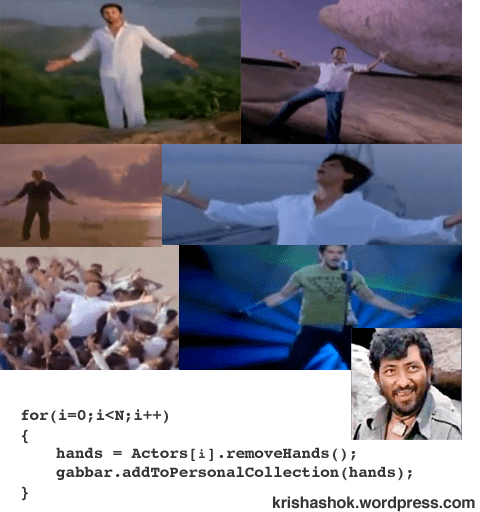 An finally. Shah Rukh, you *really* need to stop doing that wide-open-hands thing. Everybody else is doing it now, and damnit, if Amjad Khan was alive, he’d take those hands and spare us all.
