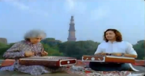 Shiv kumar sharma + overacting dude – Nice Stock footage of Kashmir while the both of you are seated in the vicinity of the Qutab minar. But wait. Is that Rohit Bal? Why is he buying spinach?
